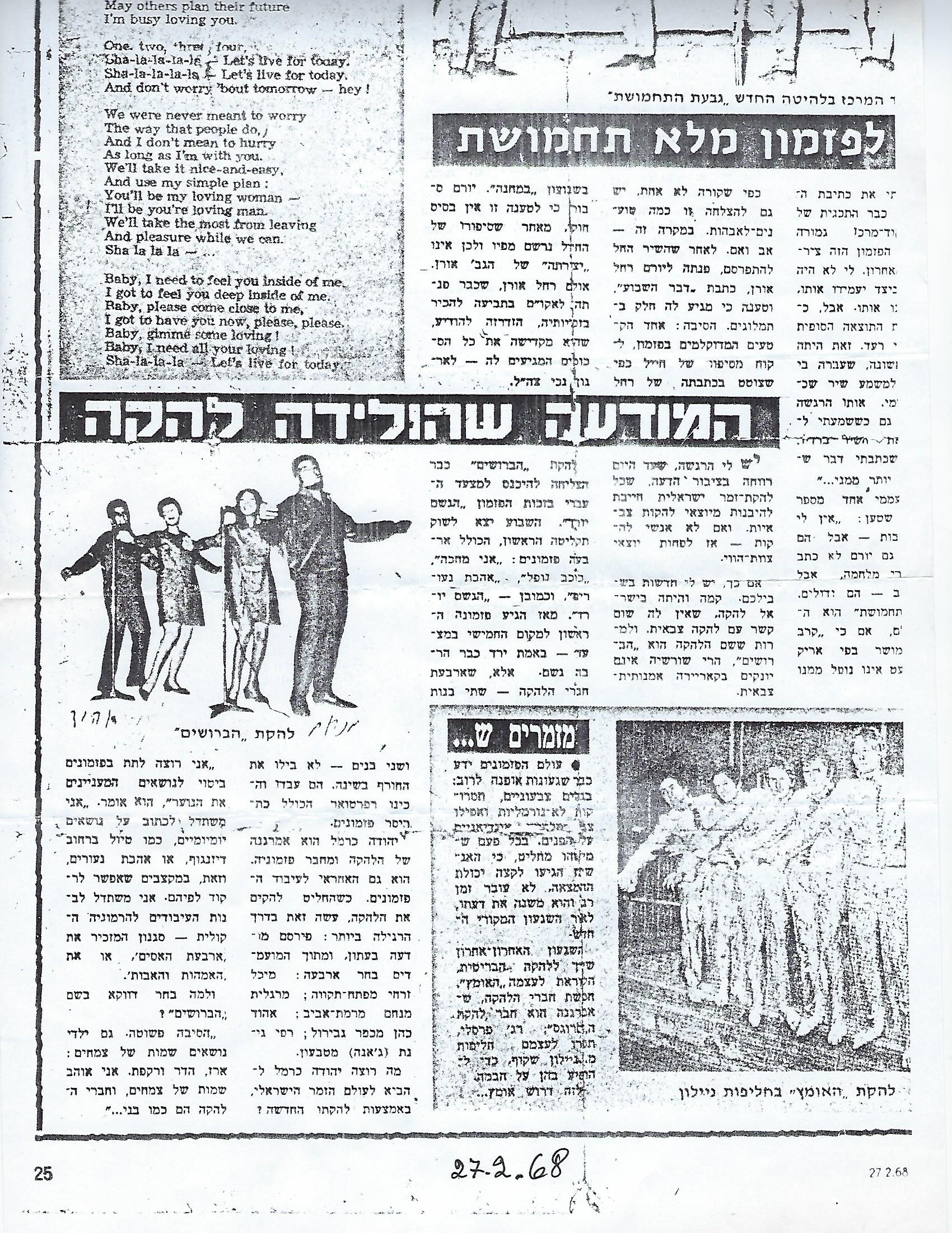 - 12.הו ילדונת, בביצוע בצלאל יונגרייז באתר YouTube גרסת 1968